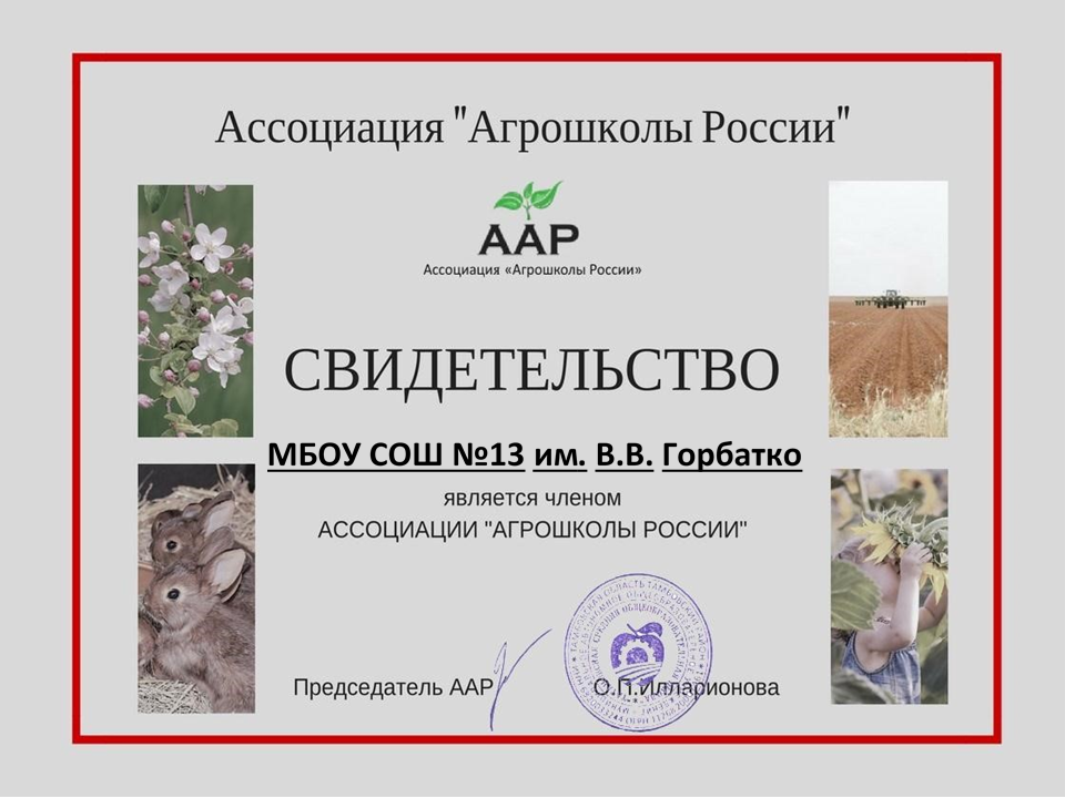 СВИДЕТЕЛЬСТВО ЧЛЕНА АССОЦИАЦИИ "АГРОШКОЛЫ РОССИИ"