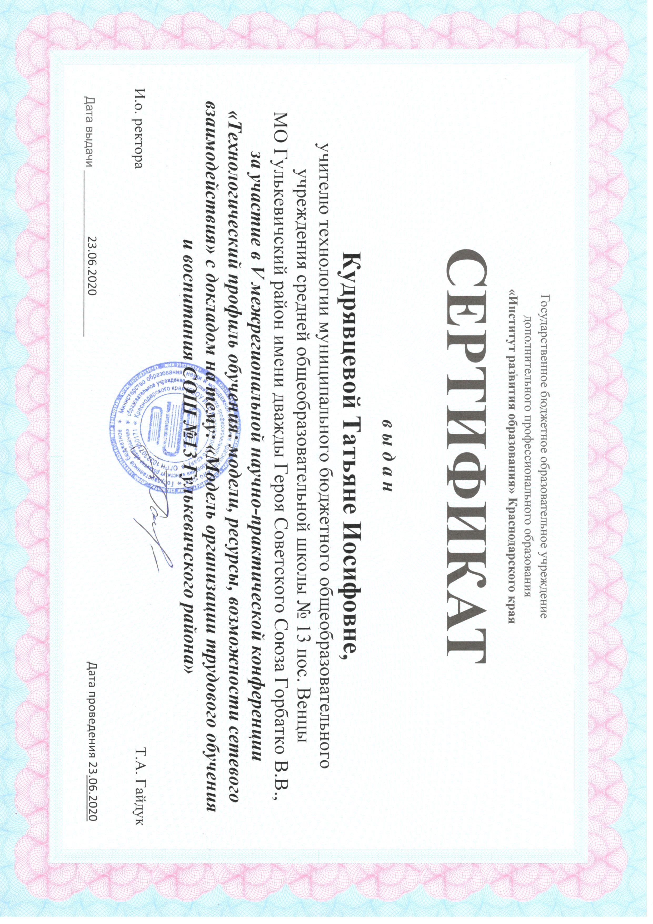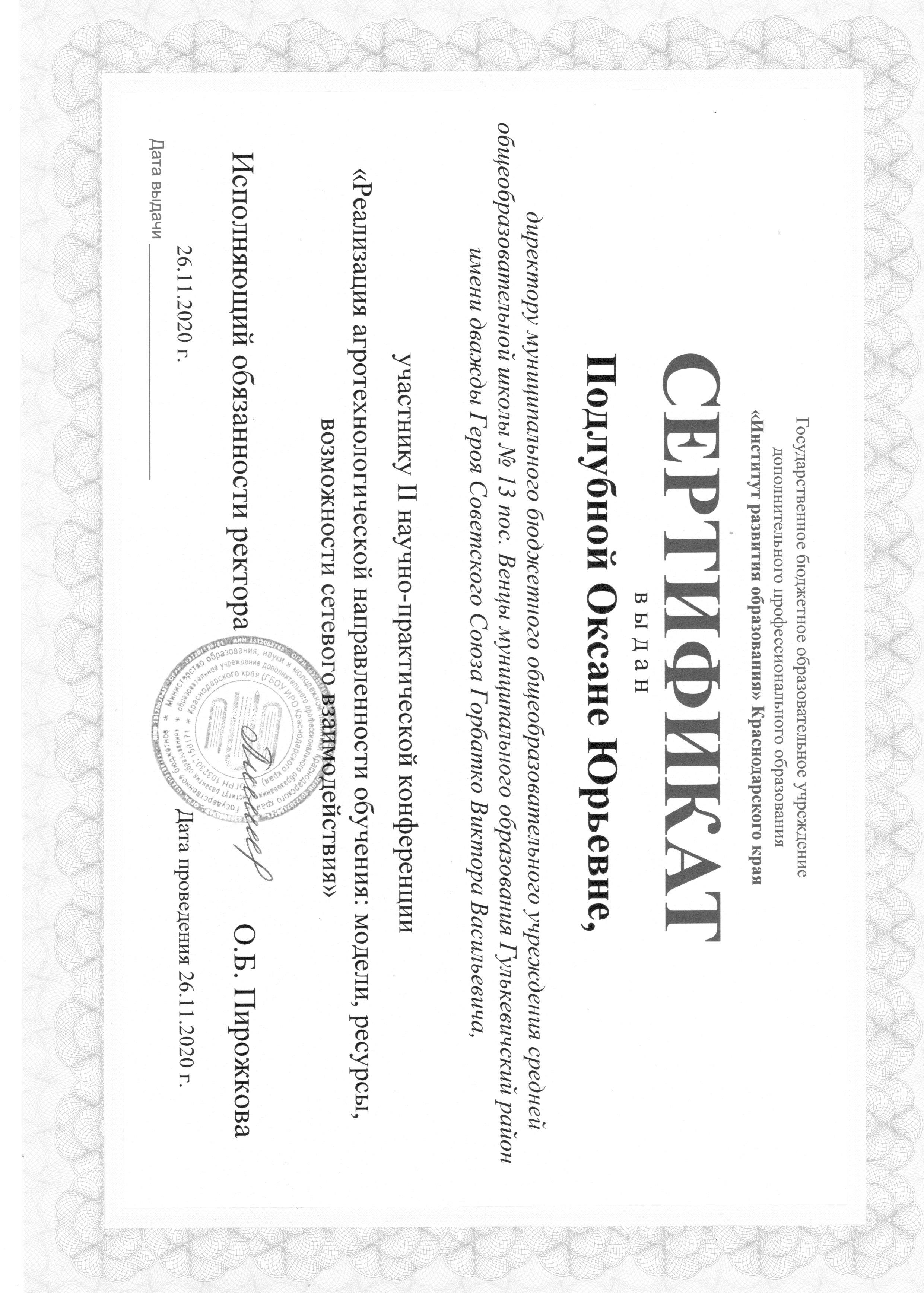 - сертификаты (Подлубная О.Ю., Зайцева В.А.)