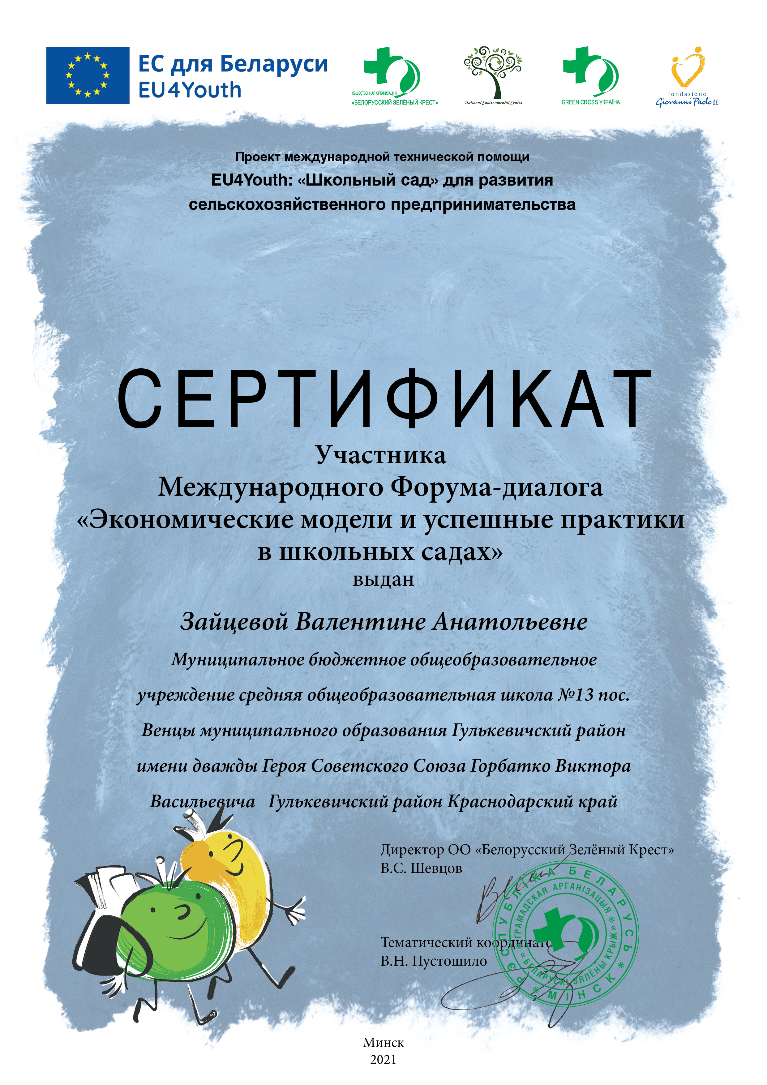 -сертификат участника форума-диалога: Зайцева В.А., Чернышев А.Н